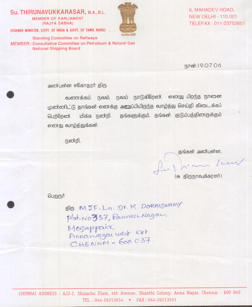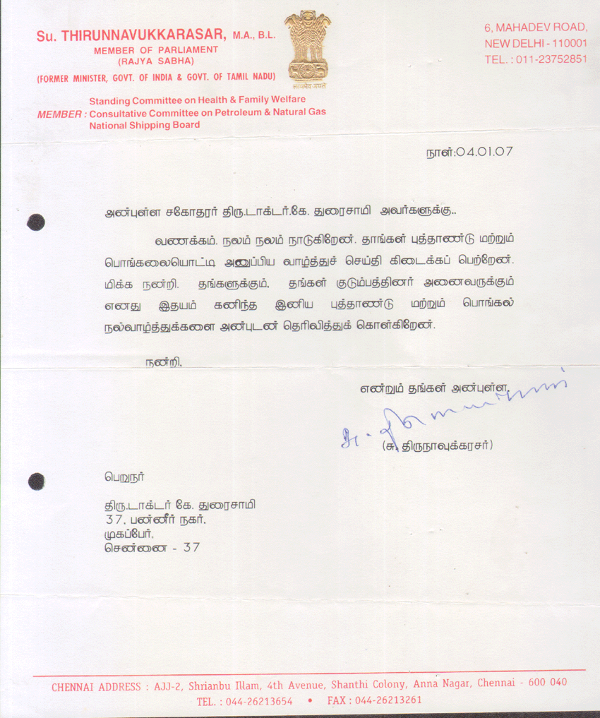 Su. Thirunnavukkarasar, Member of Parliament